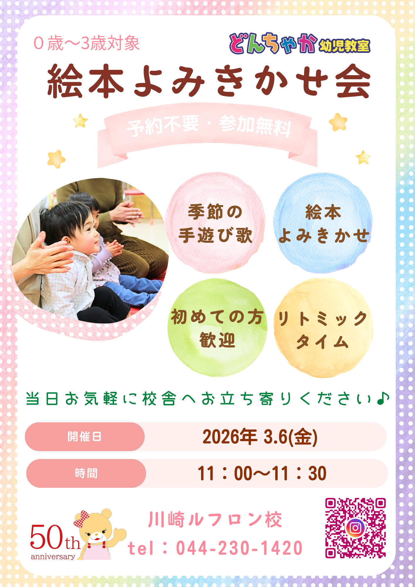 【日曜祝日開催】生後6ヶ月~3歳の為の月1コース 2026年4月~のご案内[川崎ルフロン校]