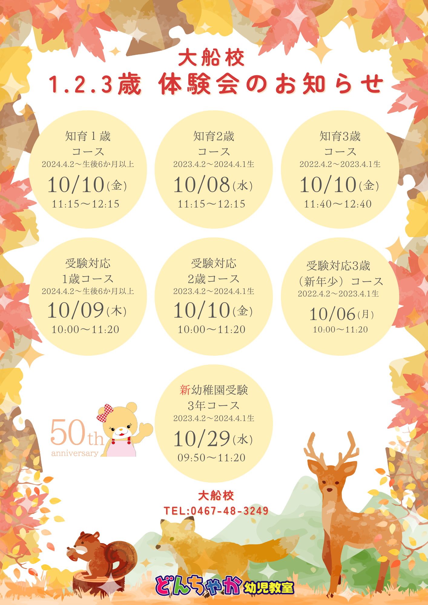 どんちゃか幼児教室 > ブログ > お知らせ > 10月の体験会のお知らせ[大船校]